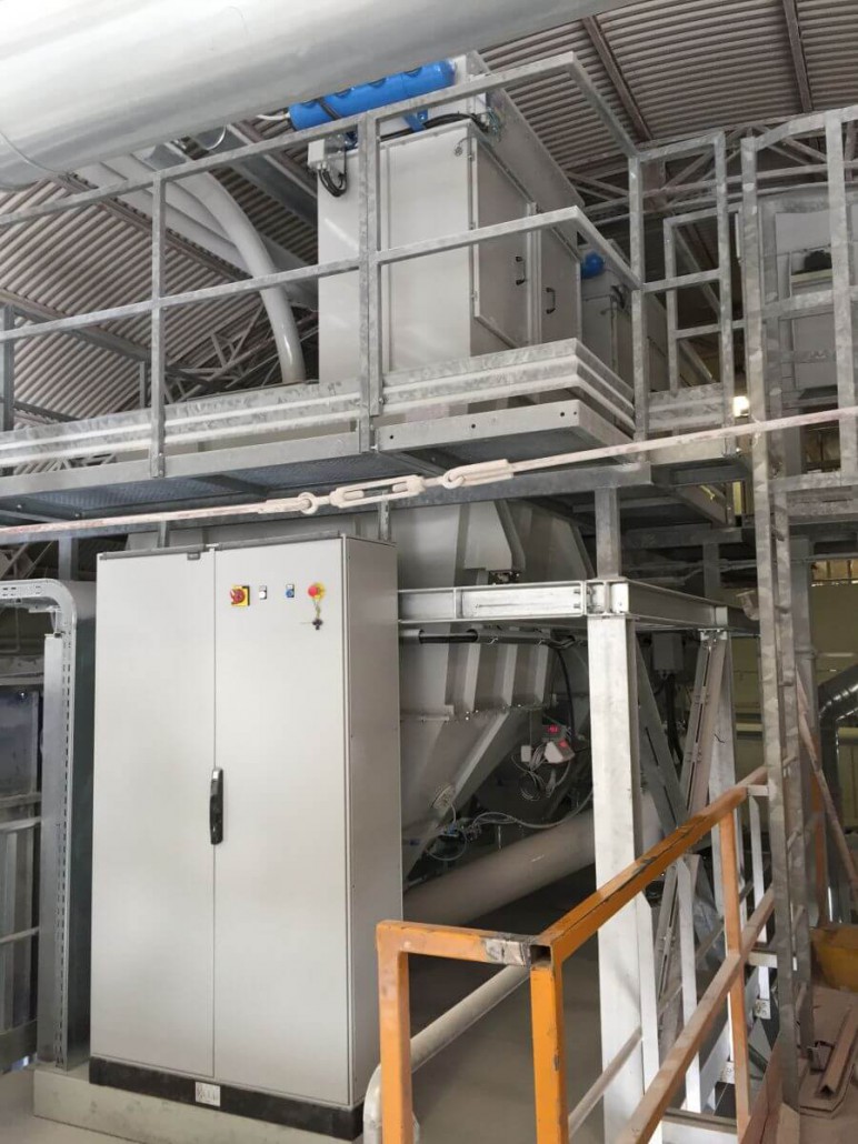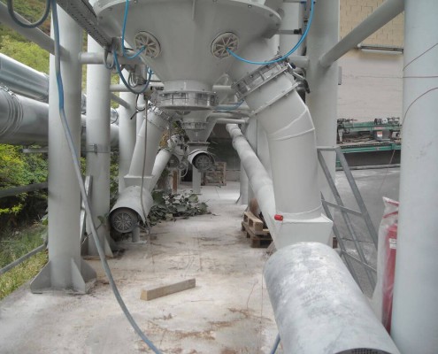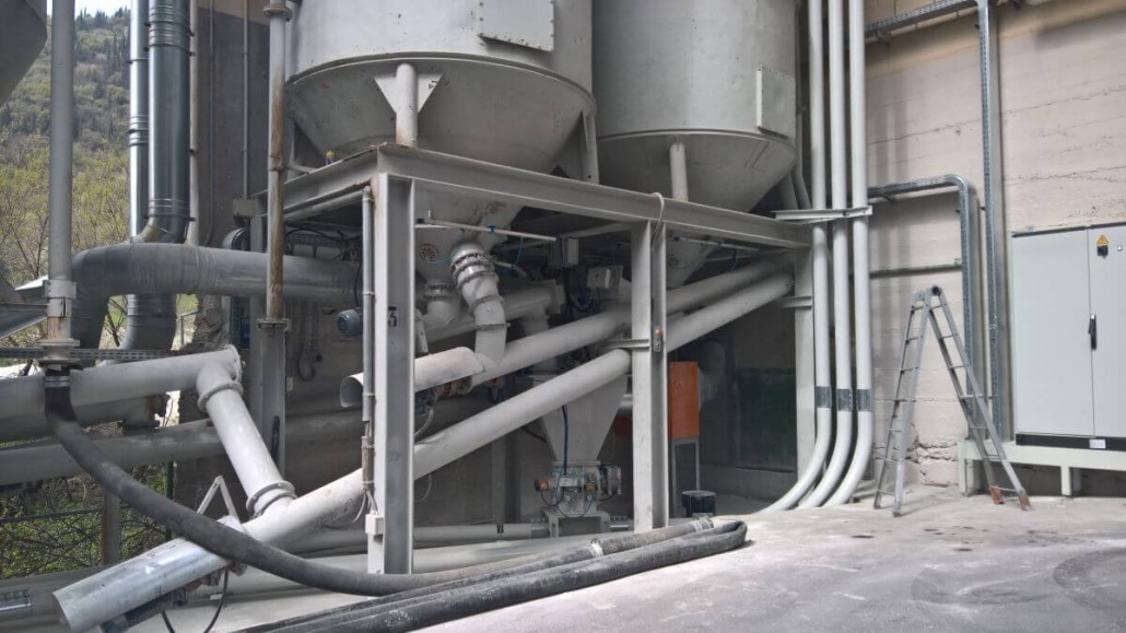 Impianto di trasporto e dosaggio delle materie prime per la produzione di blocchi di marmo