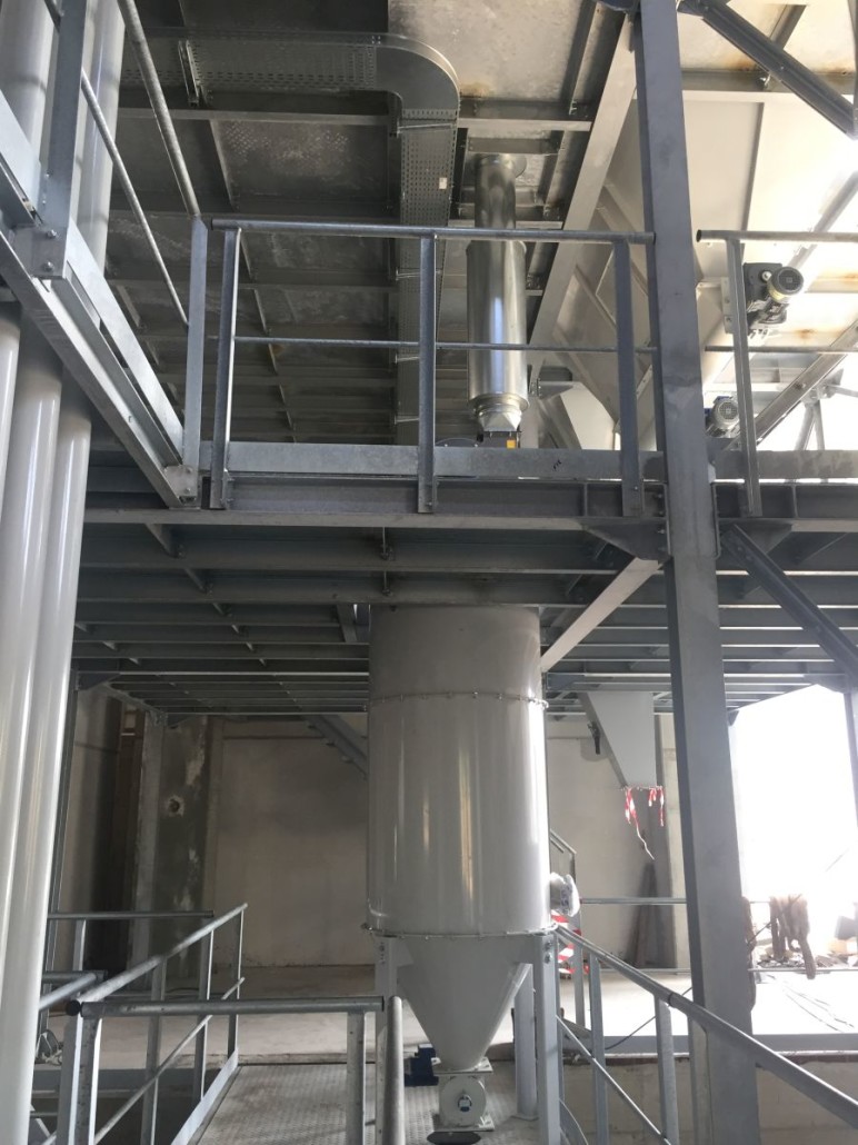 Ricevimento, estrazione, trasporto e dosaggio materie prime per la produzione di blocchi di marmo resinato